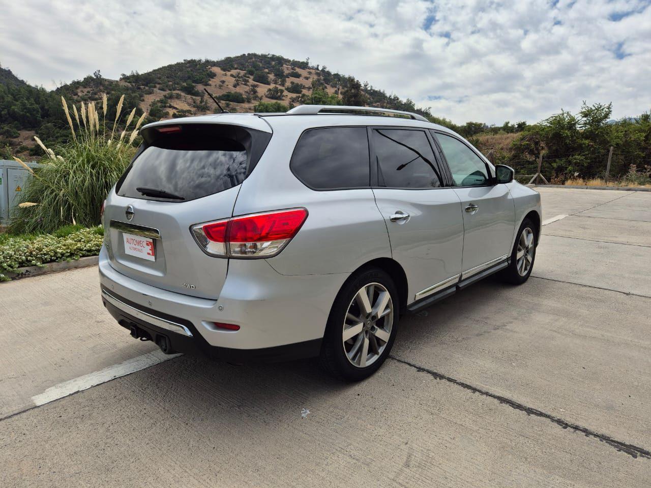 Nissan pathfinder 3.5 4X4 FULL EQUIPO. El auto esta como nuevo. Tiene asientos de cuero, calienta asientos, climatizador tri-zona, camara de retroceso con sensores delanteros y traseros, sunroof. 3 Corridas de asientos,. Aceptamos autos en parte de pago, contamos con financiamiento y pago con tarjeta de credito. Combustible: Bencina 4x4 3.5 Equipo: Original con Radio Bluetooth Mantenciones: Todas al día Dueños: 2 Llaves: 2 Permiso de Circulación: Pagado 2025 Más info: Rendimiento : 10 mixto Exterior: -Camara de Retroceso – Sensores de estacionamientos: Delanteros y Traseros – Espejos eléctricos Interior: – Asientos: Cuero y Cuero volante – Tecnología: Pantalla de infoentretenimiento de 8 pulgadas, Seguridad: 12 Airbags Isofix